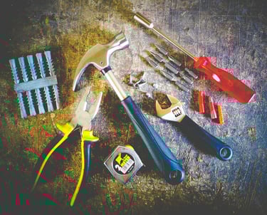 spanners, screwdrivers, pliers, wrenches, hammers, Allen keys, cutting tools